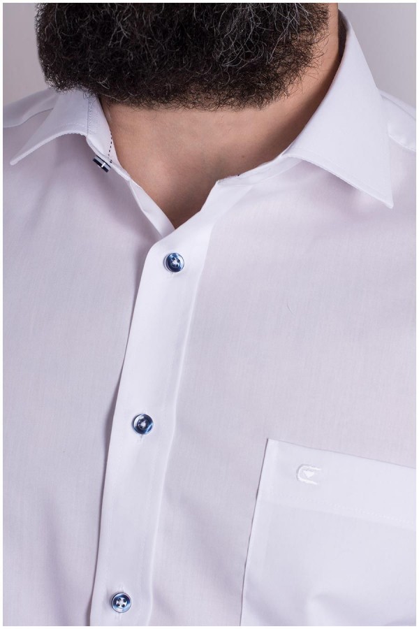 Effen elastisch dress shirt met borstzakje van het merk Casamoda. Het strijkvrije overhemd is gemaakt van 100% soft-touch katoenen poplin. De kentkraag is aan de binnenkant afgewerkt met een contraststiksel. Dubbel-laags knopen met logo.