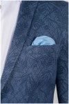 Bedrukte katoenen colbert van het merk Plusman. Het casual jasje is bedrukt met een modieus tonaal motief van bladeren. Het colbert sluit met twee knopen (single breasted) en de manchet heeft drie knopen. Alle knopen zijn voorzien van een subtiel rood stikseldetail. De blazer heeft twee zakken, een borstzak links en een binnenzak. De meegeleverde pochet is gemaakt van dezelfde stof als de contrasten aan de binnenkant van het colbert. De lichtblauwe kleur van deze stof combineert mooi met de contraststof in de kraag als extra detail. Dit colbert is tevens verkrijgbaar in een ander vergelijkbaar model (art. 110174).