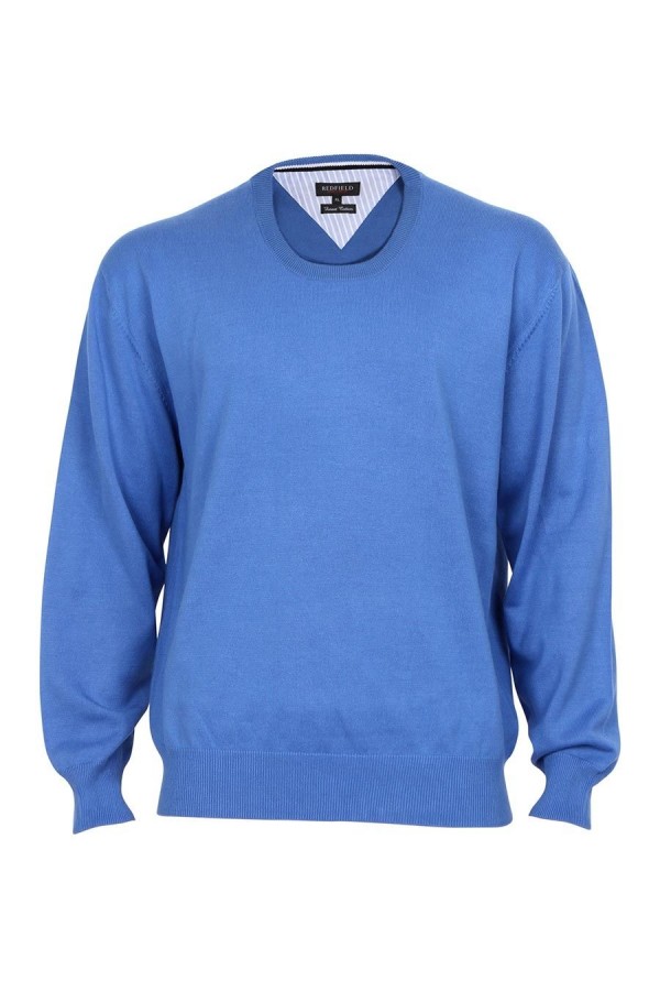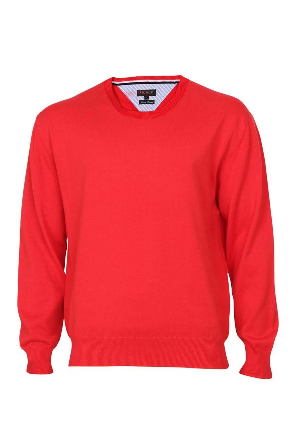 Casual unikleurige trui met ronde hals van Redfield, gemaakt van 100% katoen. De manchetten en onderkant van de grote maten pullover zijn voorzien van een ribstof met elastaan voor extra draagcomfort.